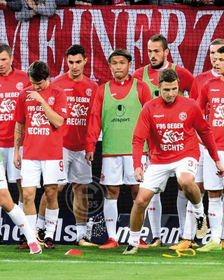 Aufwärmshirt, "F95 gegen Rechts", (match-)worn, Spieler unbekannt.