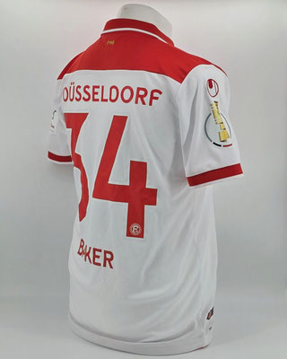 Das Trikot wurde für Lewis Baker für das Achtelfinalspiel des DFB-Pokals am 03.02.2020 beim 1. FC Kaiserslautern vorbereitet. Fortuna gewann auf dem Betzenberg mit 5:2 gegen die roten Teufel.